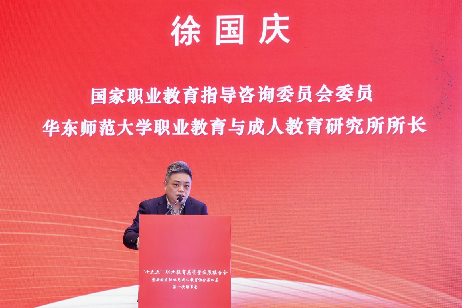 徐国庆作了题为《当前职业教育发展中的几个热点、难点问题》的专题报告。报告从“相当比例的初中毕业生不再适应普通高中学习、以实体经济为主体的产业体系需要中等职业教育的支撑、高水平高等职业教育需要优质中等职业教育作为基础”三个维度阐述了现阶段坚持办好中等职业教育的必要性,并强调中职教育的主要建设任务是提升立德树人实效、改革人才培养模式、加强师资队伍建设、推进校内外实训基地建设、深化课堂教学质量建设五个方面;职业本科教育应精准培养技术应用型人才、技术技能型人才、复合型技能人才,把建设技术学科作为办学定位的关键支撑;产教融合共同体的建设需要政府、共同体管理机构、职业学校、企业多方协同发力。政府要充分激发企业参与校企合作积极性,共同体管理机构要积极推动校企合作关系制度化,职业学校要积极推进企业人才培养功能开发,企业要积极推动人才培养过程内化。