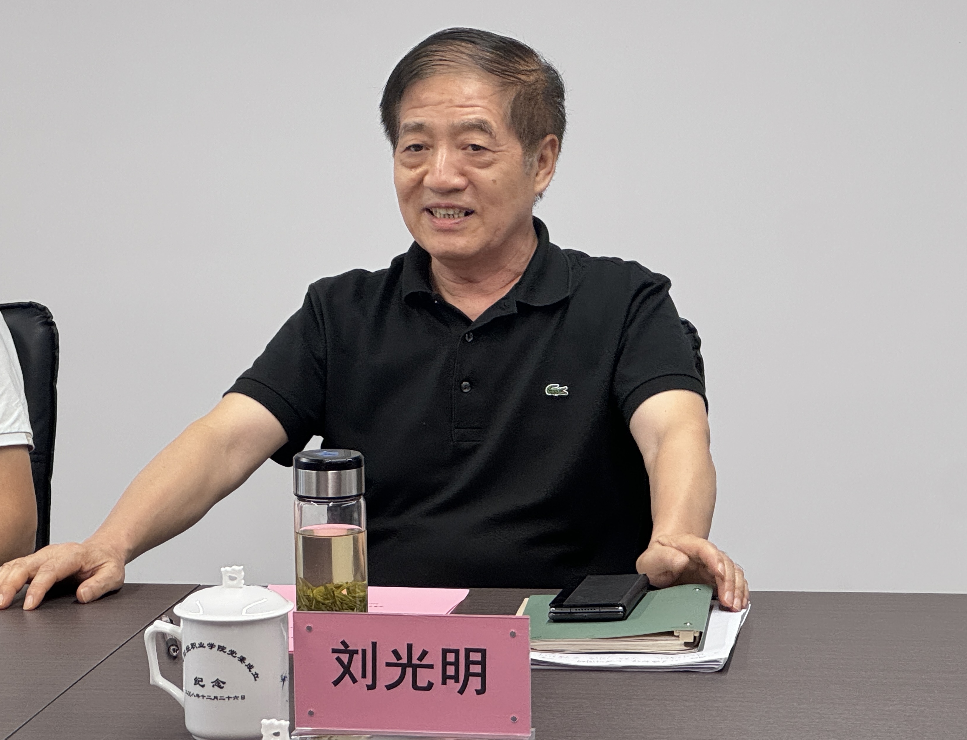 2025年9月18日,省人社厅原副厅长、安徽银领技能人才研发中心总指导刘光明一行六人来访,就银领中心近期重点打造的安徽银领数字化职教服务平台(以下简称“服务平台”)进行座谈交流。省教育厅原副厅长、一级巡视员、省职业与成人教育协会会长解平主持座谈会,省教育厅原二级巡视员、省职业与成人教育协会副会长兼秘书长林兴德等参加座谈。