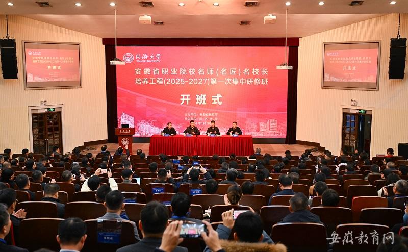 1月19日,安徽省新时代职业院校名师(名匠)名校长培养工程(2025-2027)第一次集中研修班开班典礼在同济大学举行。省委教育工委委员、省教育厅总督学邵曙光出席开班式并讲话。全省遴选的300名名师(名匠)名校长培养对象参加了开班典礼。