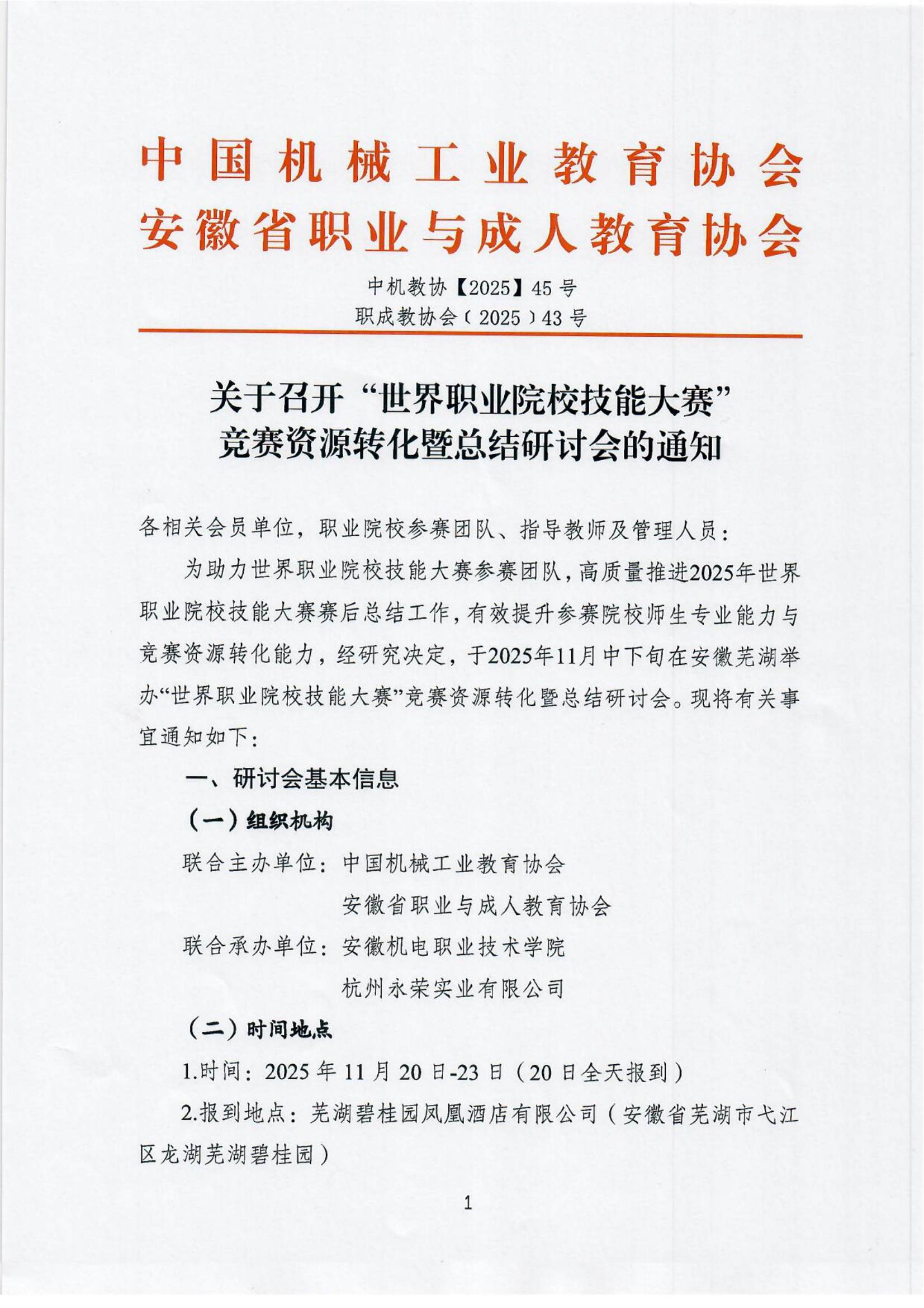 关于召开“世界职业院校技能大赛”竞赛资源转化暨总结研讨会的通知