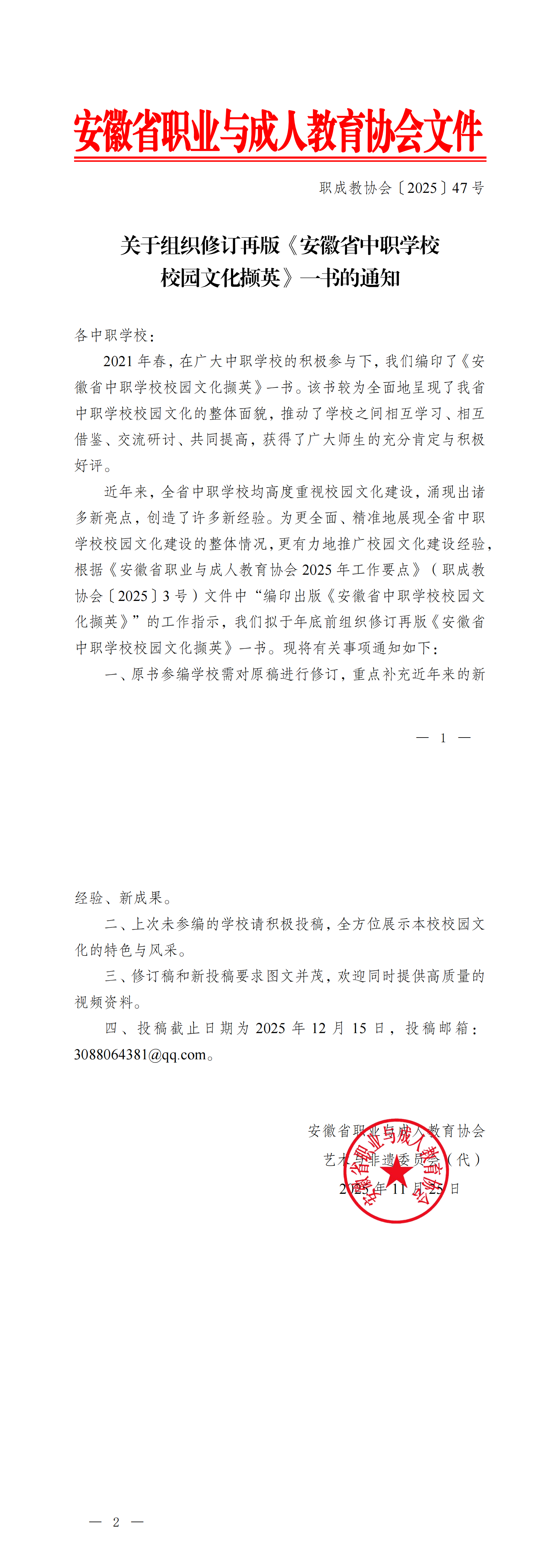 关于组织修订再版《安徽省中职学校校园文化撷英》一书的通知