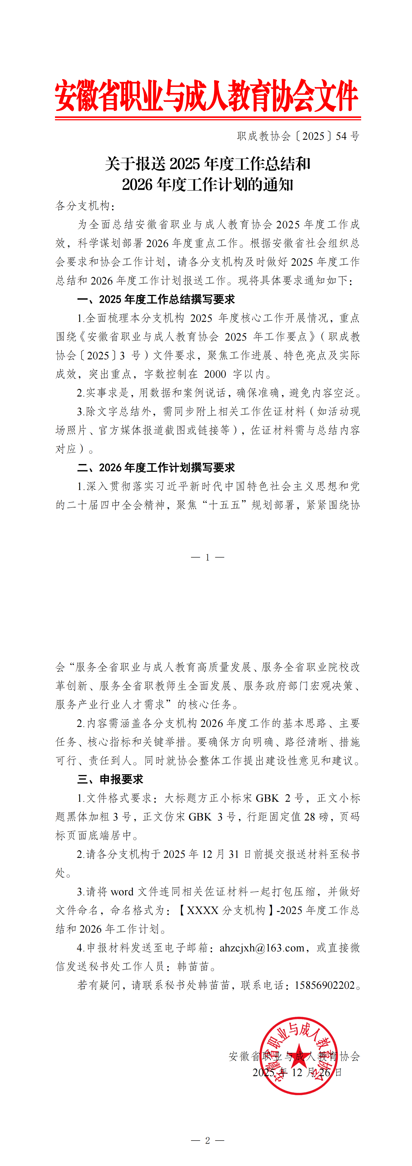 关于报送2025年度工作总结和2026年度工作计划的通知