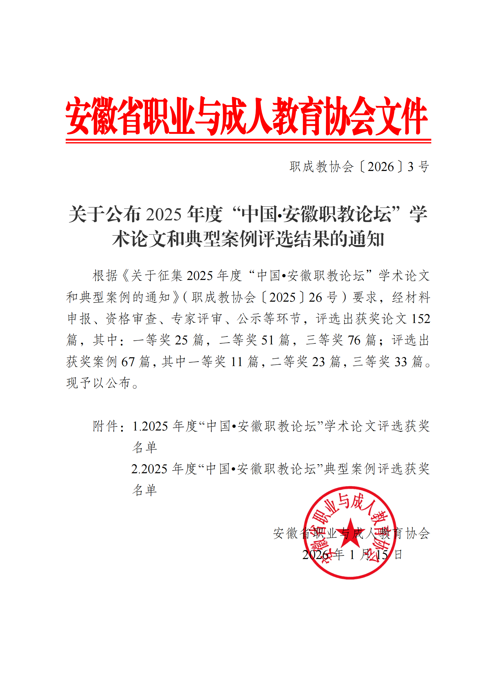 职成教协会〔2026〕3号 关于公布2025年度“中国·安徽职教论坛”学术论文和典型案例评选结果的通知.pdf