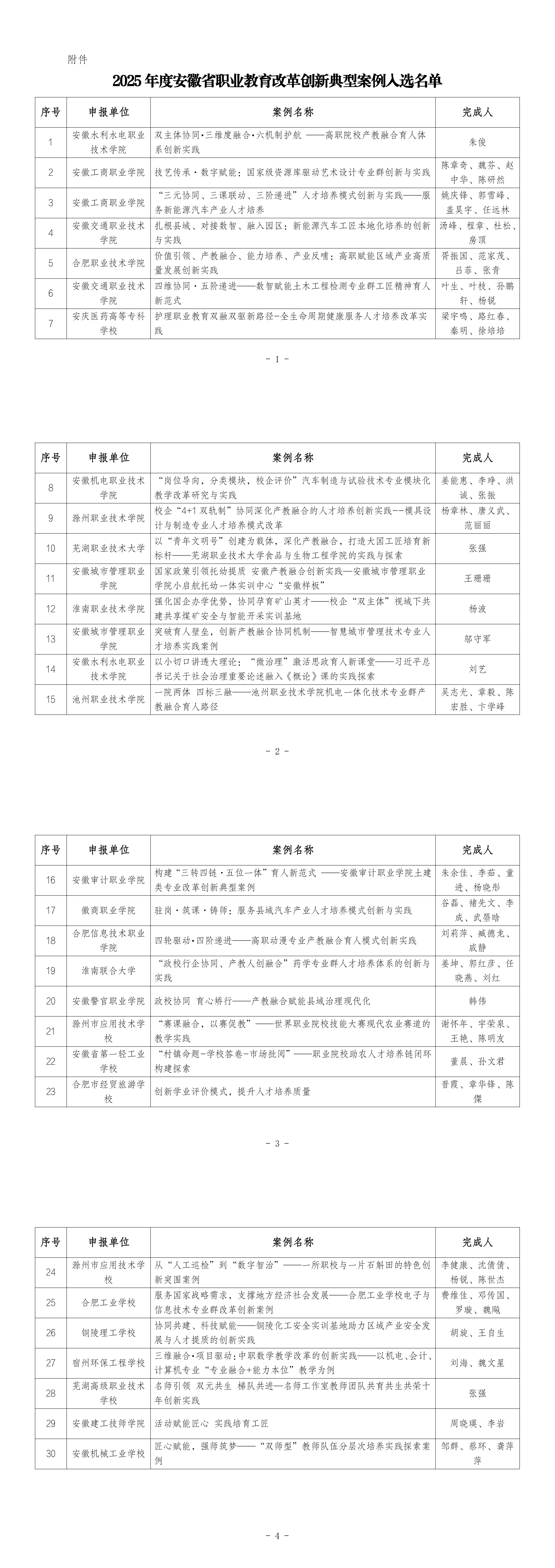 附件:2025年度安徽省职业教育改革创新典型案例入选名单