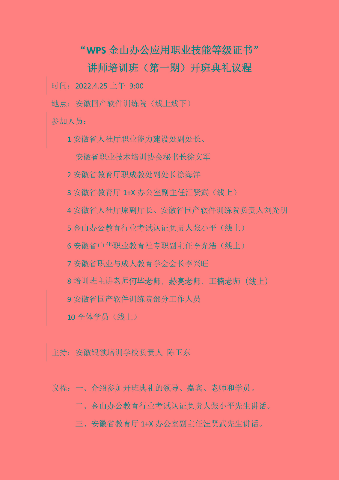 会议主题:WPS讲师培训班(一期班)开班典礼