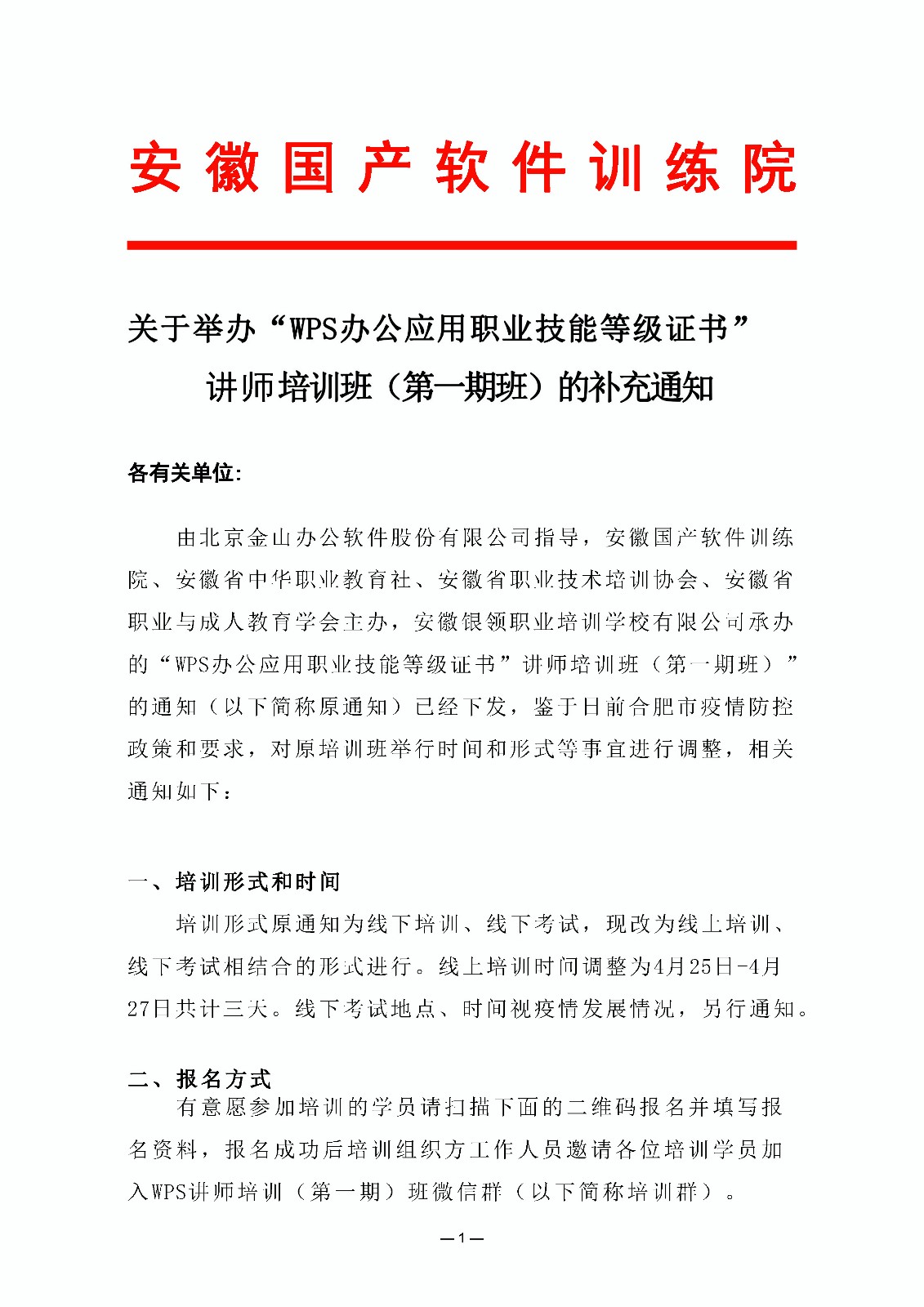 下一篇:关于举办“WPS办公应用职业技能等级证书”讲师培训班(第一期班)的通知