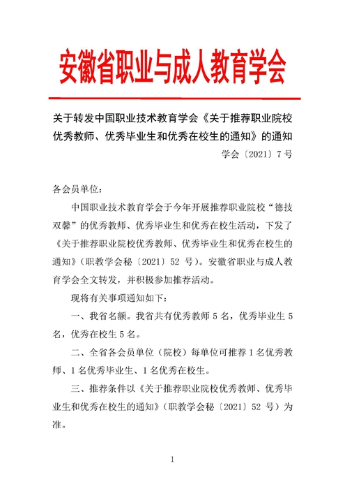 职教学会秘2021年2 号关于推介职业院校优秀教师、优秀毕业生和在校生的通知.pdf