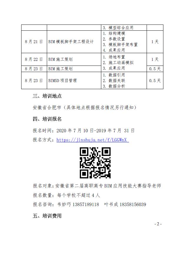 安徽省第二届高职高专BIM应用技能大赛赛前师资培训课程安排.doc