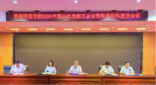为全面总结2024—2025学年第二学期工作,锚定新学期高质量发展目标,萧县师范学校隆重召开期末教职工大会暨师德师风建设会议。党委副书记、校长孙乐业,党委副书记张秀瑾,副校长邵倩倩,党委委员、县职教中心副校长李德峰,党委委员李玉良及全体教职工参加会议。