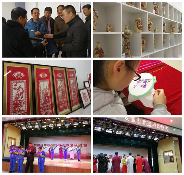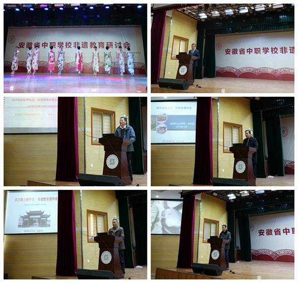 12月30日,安徽省中职学校非遗教育研讨会在阜阳科技工程学校隆重召开,来自全省27所中职学校的120多名代表参加了会议。安徽省职成教学会常务副会长、合肥科技职业学院党委书记张培银,安徽省职成教学会副会长、铜陵职教中心校长杨益民,安徽职成教学会中职分会执行会长、安徽省汽车工业学校党委书记方润生,阜阳市职教局副局长连璞,中共界首市委宣传部副部长、市文明办主任梁志,界首市教育局、文广新局等单位领导出席会议。