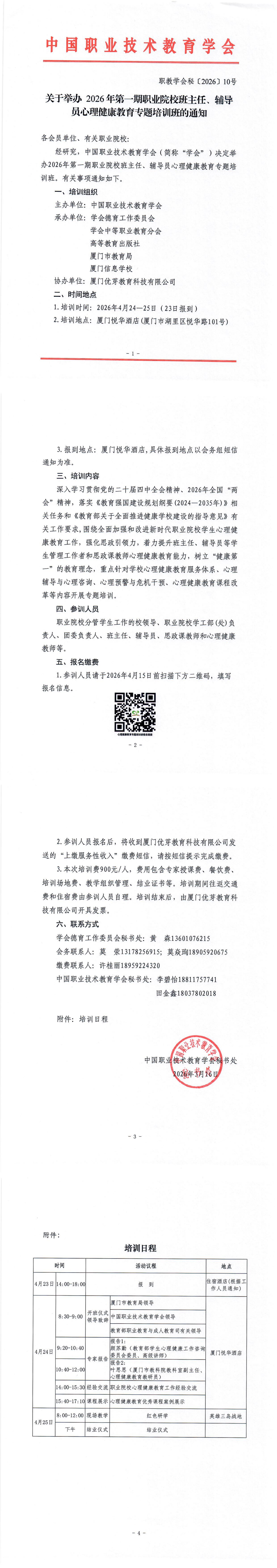 关于举办 2026年第一期职业院校班主任、辅导员心理健康教育专题培训班的通知